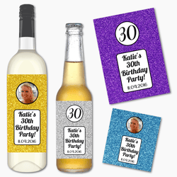 Sold out - Personalised Glitter Print Birthday Party Wine & Beer Labels
