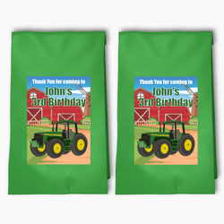 Sold out - Personalised Green Tractor Party Bags & Labels