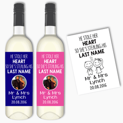 Sold out - Personalised He Stole Her Heart Wedding Wine Labels