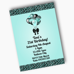 Sold out - Personalised Aqua & Black Balloons Birthday Party Invites