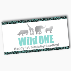 Our Personalised Aqua & Silver Wild One Birthday Party Decorations provide the perfect setting for your child's first birthday celebration. This kit is designed with a distinctive and stylish aqua and silver theme, perfect for a boy's first birthday party. Each piece is personalised with your child's name and age, giving it a unique and special touch.