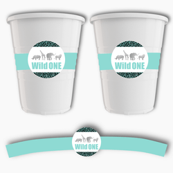 Sold out - Aqua & Silver Wild One Birthday Party Cup Stickers