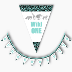 Sold out - Personalised Aqua & Silver Wild One Party Flag Bunting
