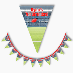 Our party decorations are fully personalised with your choice of name, age, and custom message. With our fun design of a footy being kicked over the goal posts and stadium background, your guests will know they're in for a great time. Plus, you get to choose the font colour that complements your party theme.