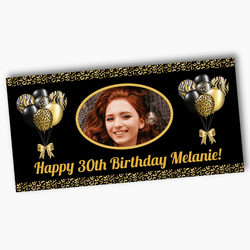 - Personalised Black & Gold Balloons Party Banners with Photo
