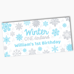 Transform your little one's first birthday party into a magical winter wonderland with our Personalised Blue Winter ONEderland Party Decorations! Our unique and high-quality decorations are designed with your child's special day in mind, featuring beautiful light blue and silver glitter snowflake clipart by YivaDesign on a white background, and large winter ONEderland text, complemented by pastel blue and silver glitter fonts.