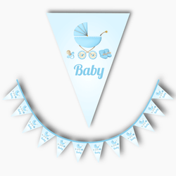 - Personalised Blue Vintage Pram Baby Shower Banners