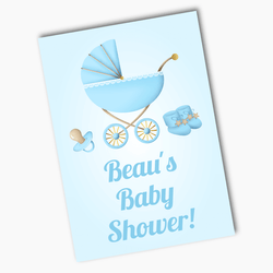 Sold out - Personalised Blue Vintage Pram Baby Shower Invites