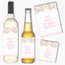Sold out - Personalised Boho Pink Floral & Lace Wine & Beer Labels