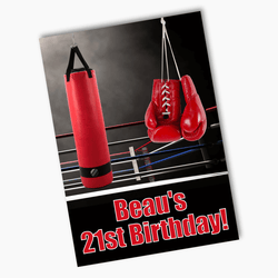 Our incredible design features a boxing ring background, complete with a boxing bag and gloves, and your choice of complementing font colour. It's the perfect backdrop for your personalised birthday message, ensuring that your guests feel the excitement of the ring.