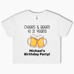 Sold out - Personalised Cheers & Beers Birthday Party Crop Shirt