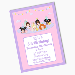Introducing our personalised girls slumber party birthday decorations, perfect for a sleepover themed birthday celebration! Your child's name and age will be beautifully incorporated into the design, making it a truly unique and special experience.
