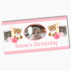 - Personalised Girls Teddy Bear Christening Banners with Photo