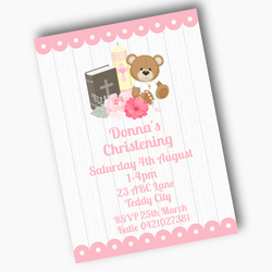 Sold out - Personalised Girls Teddy Bear Christening Party Invites