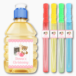 Sold out - Personalised Girls Teddy Christening Wine & Beer Labels
