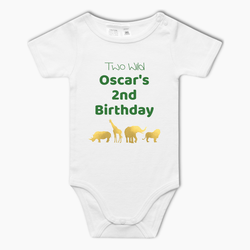 Experience an unforgettable celebration with our Personalised Gold Safari Jungle Animals Two Wild Party Decorations. Tailored to your child's name and age, these decorations offer a gender-neutral theme that's perfect for boys, girls, and joint parties. They're especially suitable for marking the milestone of a 2nd birthday.