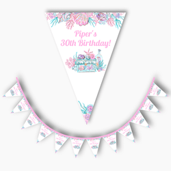 Looking for the perfect way to celebrate your upcoming engagement party? Look no further than our personalised ocean treasure engagement party decorations! These stunning decorations feature a solid white background adorned with beautiful hand-painted watercolour sea shells and under the water clipart by HeidiCillustration. And the best part? They're customised with the happy couple's names and occasion!