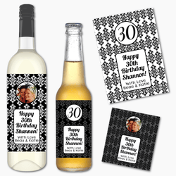 Sold out - Personalised Elegant Damask Birthday Gift Wine & Beer Labels(1)
