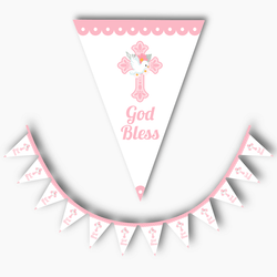 Sold out - Personalised Pink & White Dove Christening Flag Bunting