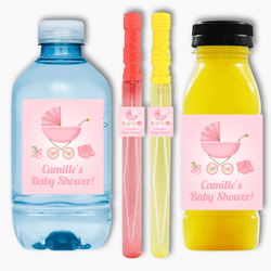 - Personalised Pink Vintage Pram Baby Shower Water Labels