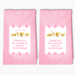 Sold out - Personalised Pink & Gold Safari Animals Party Bags & Labels