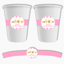 Collection: Personalised Pink & Gold Safari Animals Two Wild Party Decorations
