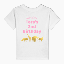 Sold out - Personalised Pink & Gold Safari Animals Party Kids T-Shirt