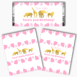 Sold out - Personalised Pink & Gold Safari Animals Mini Chocolate Labels
