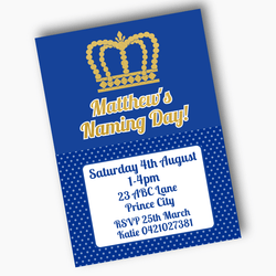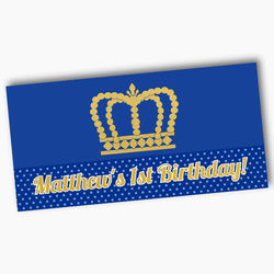 Every piece in our range is expertly crafted with premium materials and finished with gorgeous gold foil print crowns, making them a truly eye-catching addition to your party decor. Plus, with the option to customise our banners, bunting, invites, loot bags, and party favours with your child's name and occasion, you can create a truly unique and personalised celebration that your little prince will love.