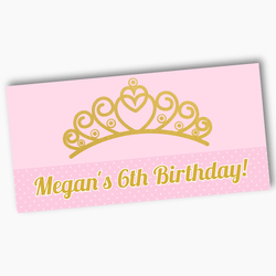 Celebrate your little princess's birthday in style with our personalised Princess Tiaras Party Decorations! Our beautiful and elegant design features stunning gold foil print tiaras on a light pastel pink background, complemented by pink polka dot edges and gold foil cursive fonts. It's the perfect addition to any royal princess themed party!