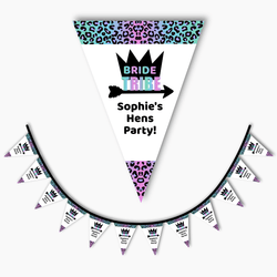With our unique design, your party will be the talk of the town. The 'Bride Tribe' text with a Black Silhouette Crown and Boho Arrow is paired with a Solid White Background with Rainbow Leopard Print Edges by Denleys. The contrasting Rainbow Fonts complete the look, making it the perfect addition to any hens party celebration.