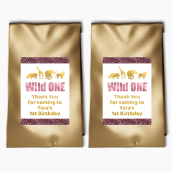 Sold out - Personalised Rose Pink & Gold Wild One Party Bags & Labels
