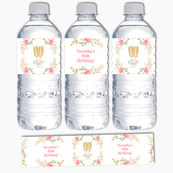 Sold out - Personalised Pink & Gold Floral Party Water Labels