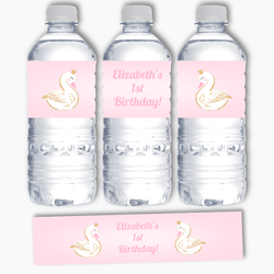 Sold out - Personalised Pink & Gold Swan Party Water Labels