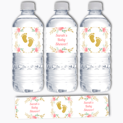 Sold out - Personalised Floral Footprints Baby Shower Water Labels(1)