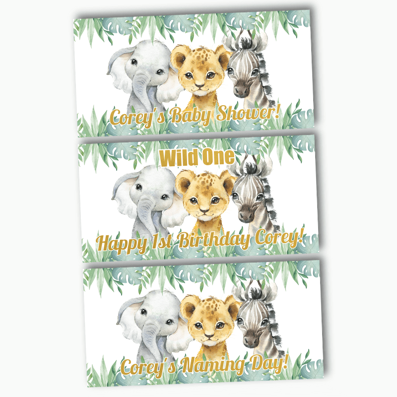 Check Out our Full Range of Personalized African Animals Birthday Party Banners, Decorations & Labels. We also have Discounted Party Packs Available at Amazing Prices!