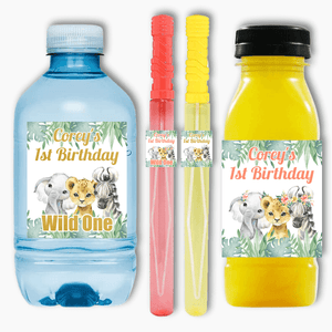 Looking for a fun and versatile way to add a personal touch to your party decorations? Look no further than our Personalised African Animals Party Rectangle Stickers! These customised stickers are perfect for decorating drinks, favours, loot boxes, and even bubble wands!