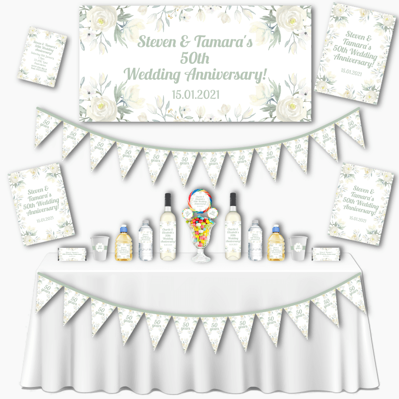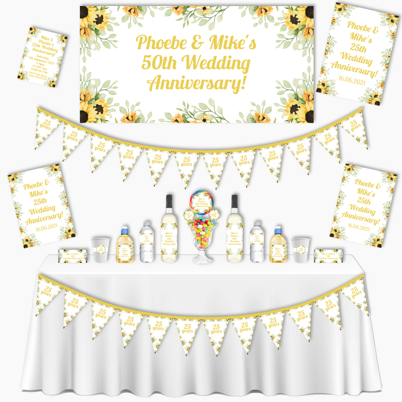 Our Wedding Anniversary Decorations and Supplies are printed with the happy couple's names and anniversary milestone, which will make your guests feel extra special. With lots of rustic and floral designs to choose from, you can pick the one that perfectly matches your taste and style. Our Party Supplies include Banners, Posters & Bunting, Party Invites & Chocolate Wrappers, Customized Stickers, Loot Bags & Party Favours, making sure that you have everything you need for your celebration.