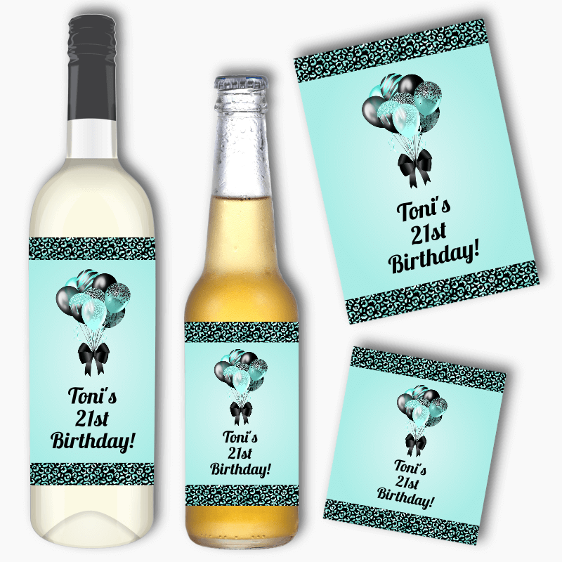 Customise our Personalised Aqua & Black Balloons Party Wine & Beer Labels with the Celebrant's Name & Special Occasion. No matter the Event or Celebration, our wine and beer labels are the perfect addition. Delight your guests with a personalised touch that showcases your thoughtfulness and creativity.