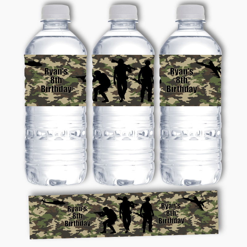 Are you looking to add a personal touch to your next party or special occasion? Look no further than our Personalised Army and Camouflage Party Water Labels! These unique labels are the perfect way to elevate your event and add a touch of style and sophistication to your party décor. We understand the importance of party styling, which is why our team of experts has designed these Water Labels for Parties to complement your theme and make your event unforgettable.