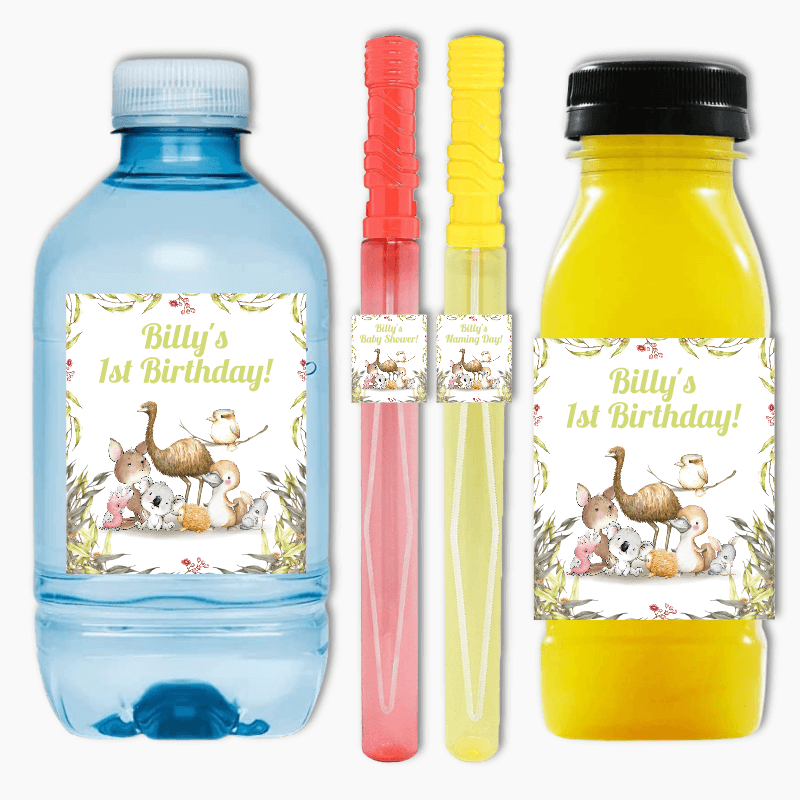 Looking for a fun and versatile way to add a personal touch to your party decorations? Look no further than our Personalised Australian Animals Party Rectangle Stickers! These customised stickers are perfect for decorating drinks, favours, loot boxes, and even bubble wands!