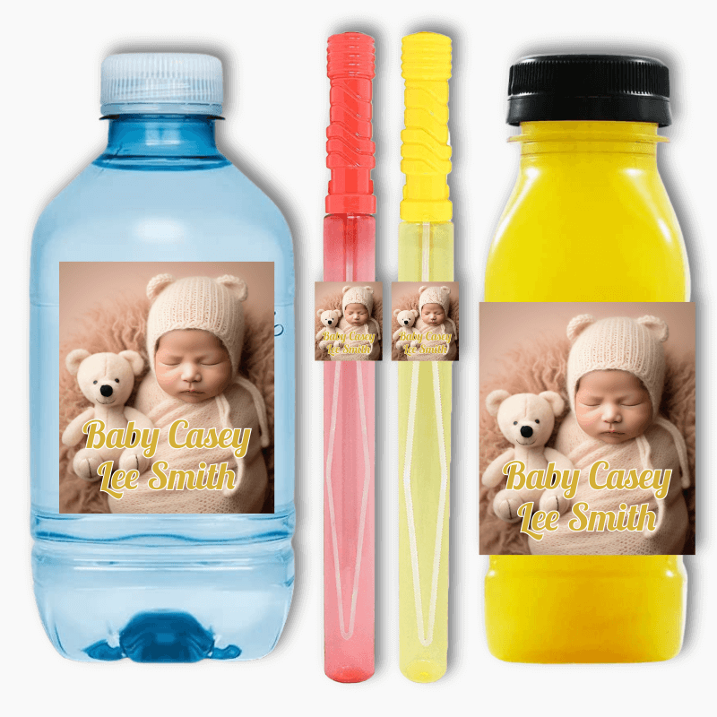 Introducing our Personalised Baby Welcome Rectangle Stickers with Photo, the perfect addition to your baby celebration! These versatile Baby Welcome Stickers are designed to add a personal touch to your event, making it truly unforgettable. Whether you're decorating drinks, favours, loot boxes, or even bubble wands, our custom stickers are the ideal choice for any occasion.
