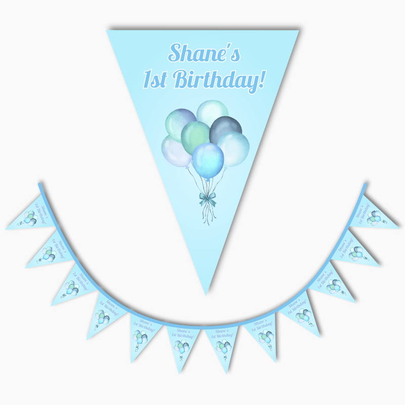 Are you looking for a unique and unforgettable way to celebrate your child's birthday? Look no further than our Personalised Pastel Blue Balloons Birthday Party Decorations! Our decorations feature beautiful hand-painted watercolour pastel blue, aqua, and green balloon clipart by FineArtLaab, giving your party a one-of-a-kind look.