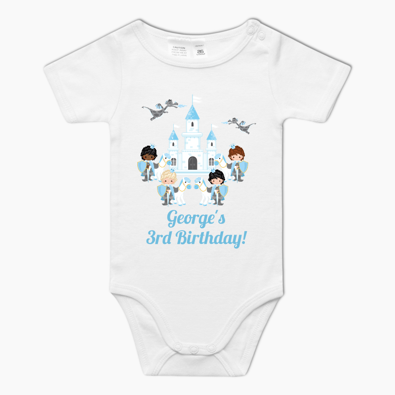 Celebrate your baby's special day with an outfit as unique as the occasion itself. Order your Personalised Blue Prince Baby One-Piece Romper today and make your little one the star of the party.
