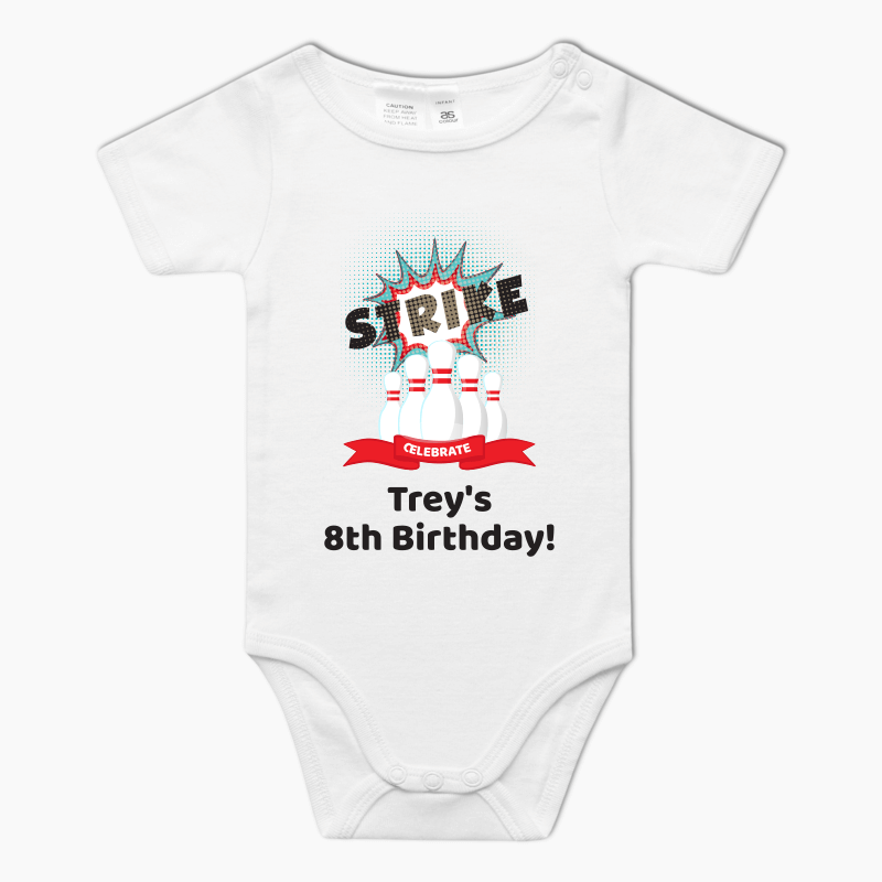 Celebrate your baby's special day with an outfit as unique as the occasion itself. Order your Personalised Bowling Baby One-Piece Romper today and make your little one the star of the party.