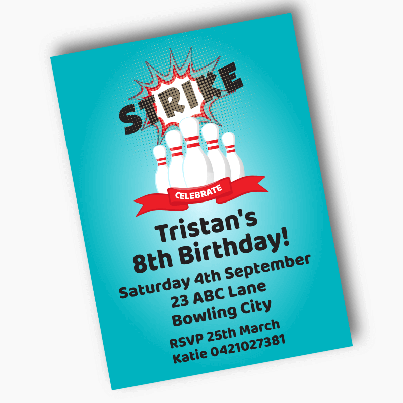Are you looking for a way to make your party stand out from the rest? Look no further than our Personalised Bowling Birthday Party Invites! Our amazing invitations are designed to impress your guests from the moment they receive them.