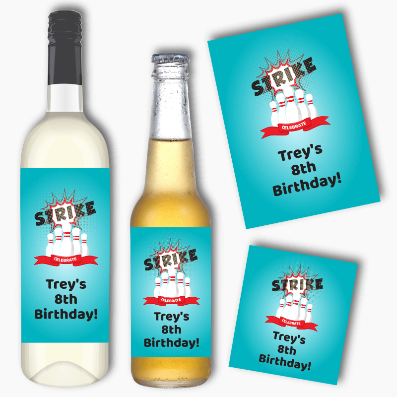 Customise our Personalised Bowling Birthday Party Wine & Beer Labels with the Celebrant's Name & Special Occasion. No matter the Event or Celebration, our wine and beer labels are the perfect addition. Delight your guests with a personalised touch that showcases your thoughtfulness and creativity.