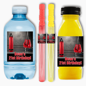 Looking for a fun and versatile way to add a personal touch to your party decorations? Look no further than our Personalised Boxing Birthday Party Rectangle Stickers! These customised stickers are perfect for decorating drinks, favours, loot boxes, and even bubble wands!