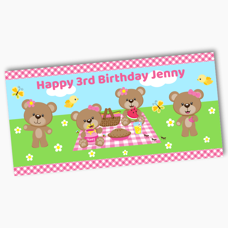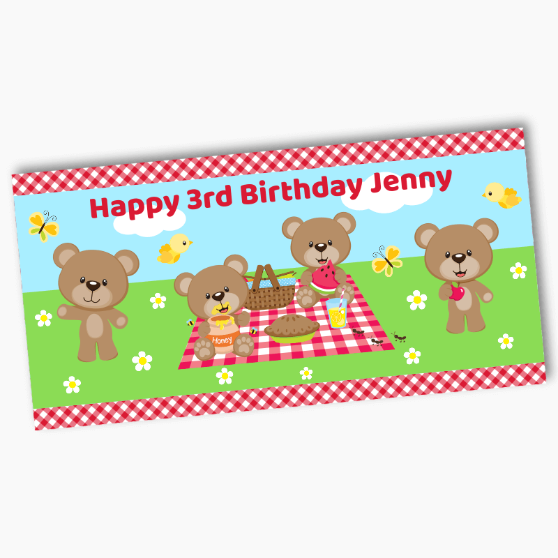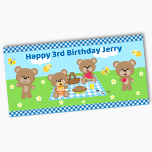 Make your special occasion truly unforgettable with our Personalised Teddy Bears Picnic Party Banners! Our high-quality banners are the perfect centrepiece for any event and are guaranteed to make your guests feel right at home. With three sizes to choose from, you can select the perfect banner for your occasion.