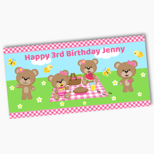 Check Out our Full Range of Personalized Teddy Bears Picnic Party Banners, Decorations & Labels - Blue, Pink, and Red. We also have Discounted Party Packs Available at Amazing Prices!
